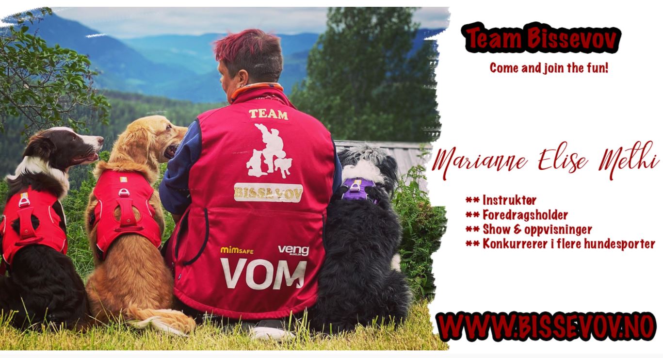 Marianne Elise Methi er en sammarbeidspartner med mange gjern i ilden. Hun holder kurs, foredrag og har show og oppvisninger. Hundene hennes er kjent fra diverse tv opptredener som f eks Thomas Giertsen Helt perfekt. Hun har også deltatt i Norske talenter og vunnet freestylekonkurransen på CRUFTS i 2022. Sjekk Team Bissevov sin hjemmeside her